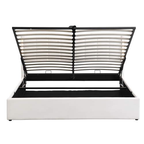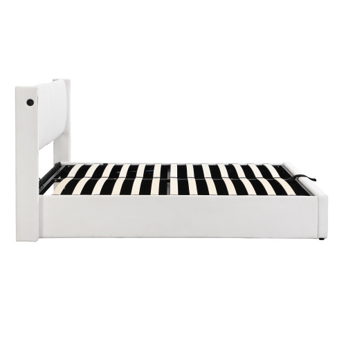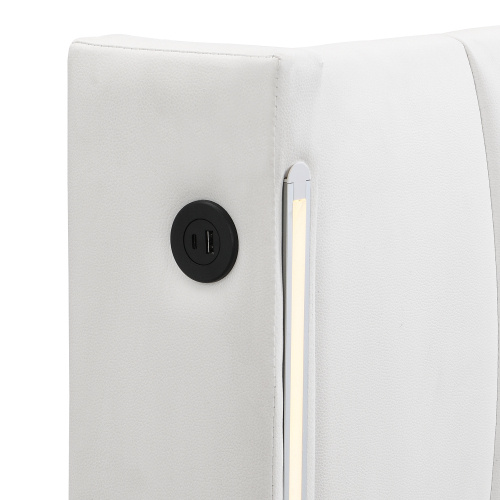 - Nom du produit : Lit LED rembourré, King Size (150×200 cm), lit hydraulique, port USB rechargeable intégré, éclairage LED, espace de rangement, tête de lit ajustable, PU, blanc
